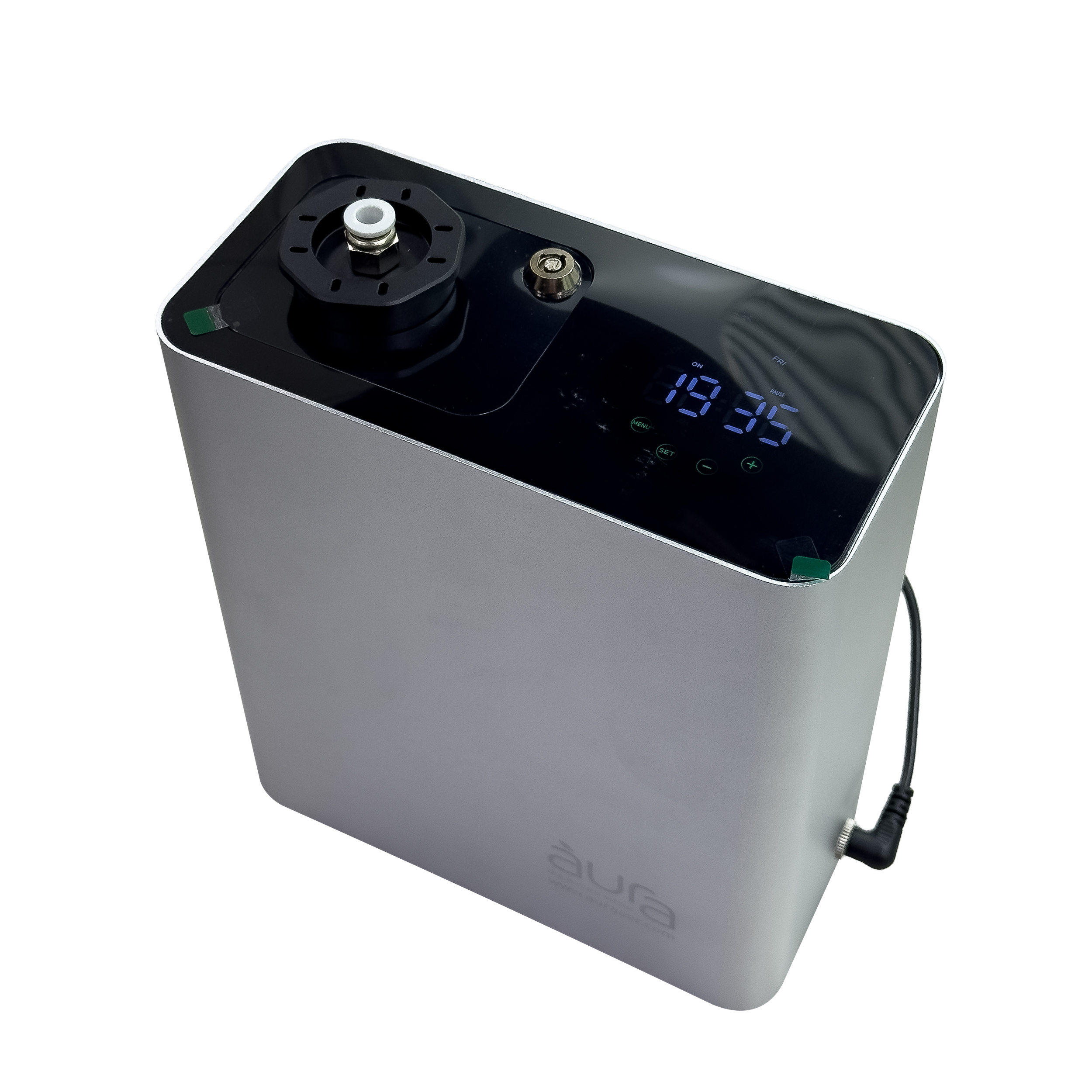 The AURA MELLIFERA combines modern design with advanced nano diffusion technology for efficient and consistent scent delivery. Built with an anodized aluminum body and tempered glass panel, it’s available in elegant black or white finishes. This diffuser supports freestanding, wall-mounted, desktop, or HVAC installation, offering flexibility for any interior. With low oil consumption, quiet performance, and support for 150ml to 1000ml refill bottles, it’s ideal for homes, offices, and commercial spaces seeking a premium fragrance experience.